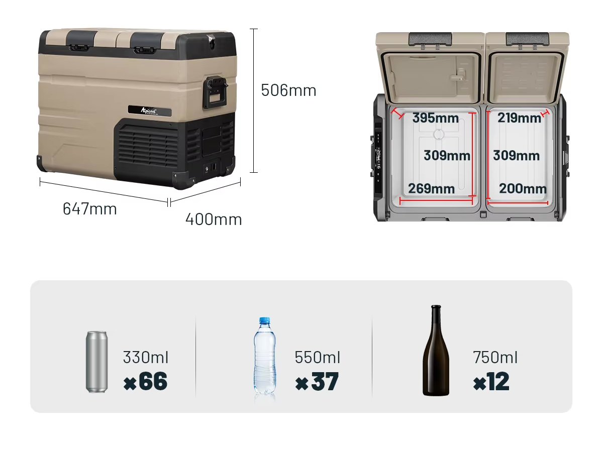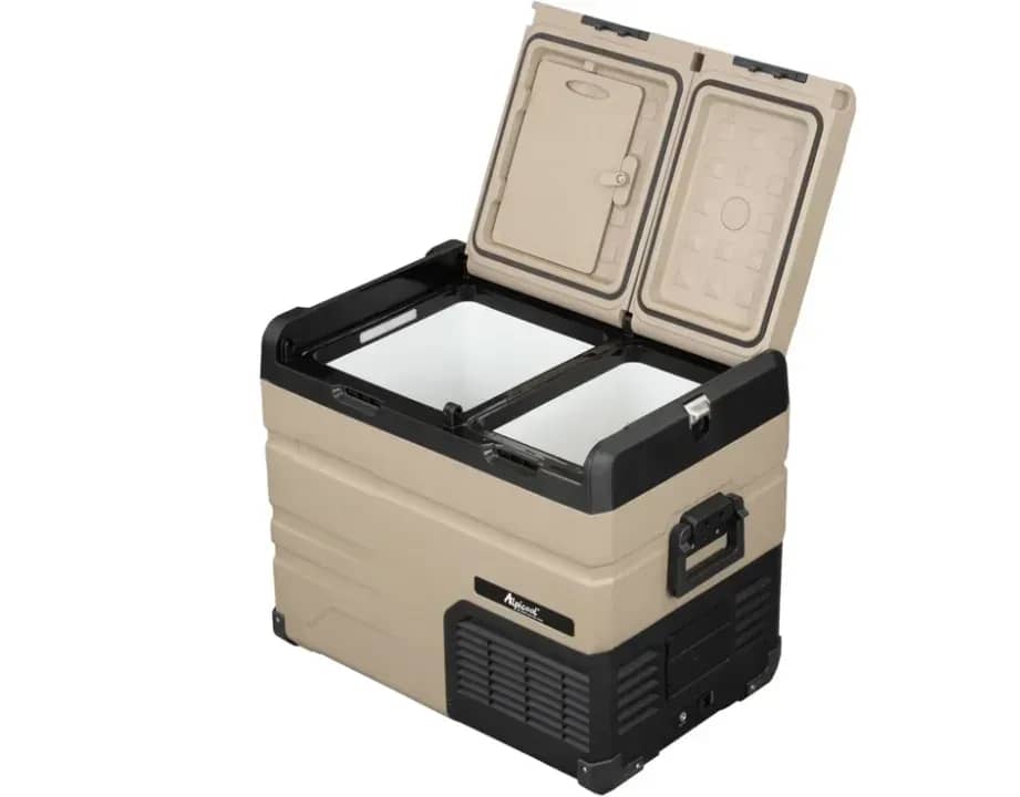 Компрессорный автомобильный холодильник Alpicool TA45 имеет большую вместимость и отлично подойдет как для совместных путешествий в кругу семьи, так и для профессиональных охотников и рыболовов. Модель разделена на две независимые холодильные камеры, Вы сможете одновременно замораживать и охлаждать продукты в одном холодильнике. Крышки переставляются для открытия в обе стороны. Дополнительно защищена угловыми противоударными накладками. Это настоящий премиум класс с доступной стоимостью.